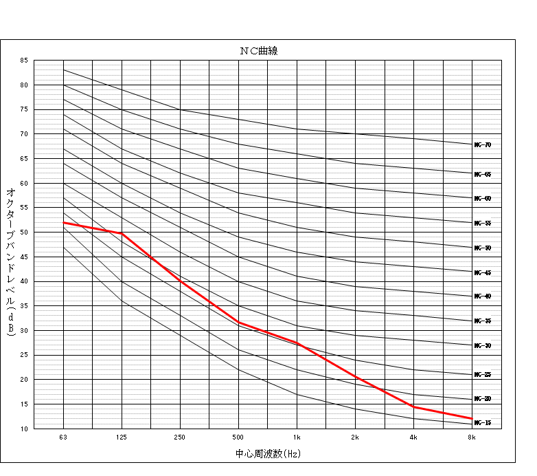 規制基準内でも苦情に対応するため、周波数解析も可能です。また、静けさの騒音測定(NC曲線等)も実施しています。